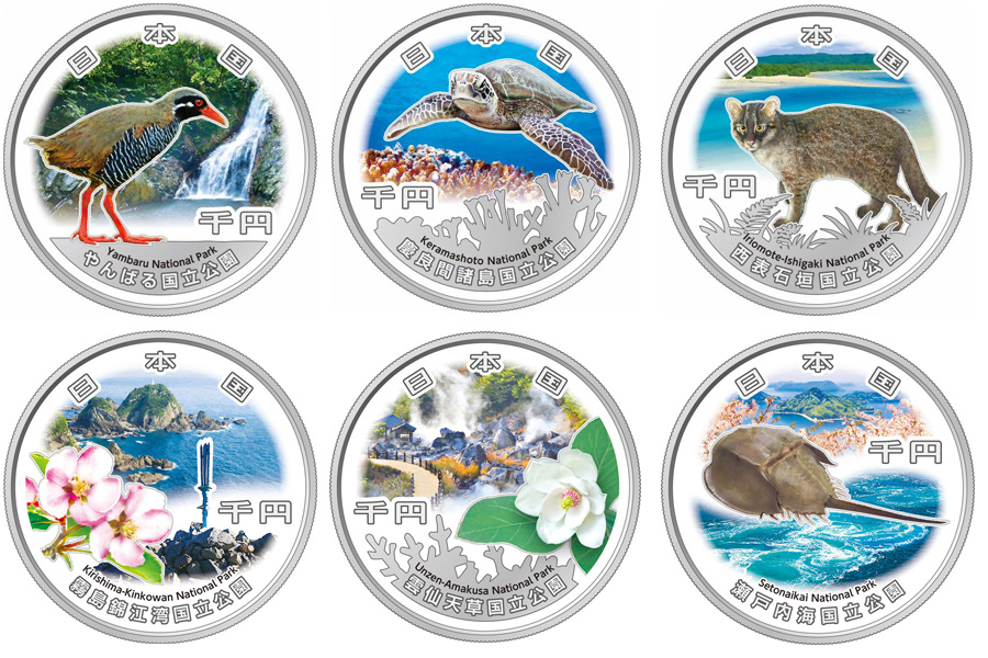 慶良間、西表、やんばる、霧島錦江湾、雲仙天草、瀬戸内海 プルーフ 各20,000円 税込・送料込
